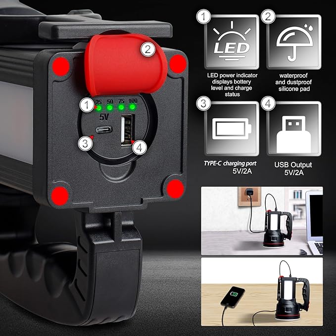 BIGSUN Spotlight Flashlight, 12800 mAh Rechargeable Flashlights High Lumens, Multifunctional Bright Flashlight, Outdoor Waterproof Camping Search Light Tactical Torch for Emergency, Boat, Hunting