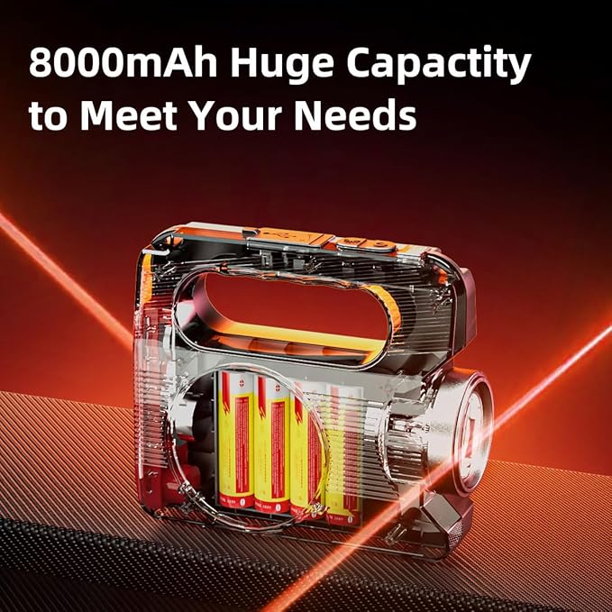 - 8000mAh Power Supply: WARSUN rechargeable emergency flashlight is equipped with a high-quality 8000mAh battery. Rechargeable flashlight not only provides reliable illumination but also serves as a convenient emergency power supply for charging mobile devices, providing 10-20 hours of illumination for extended outdoor adventures.