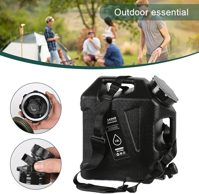 - 【Outdoor and Emergency Use】- This Camping Water Container is equipped with 2 carrying handle and a strap, very convenient to carry. It is cool looking and perfect for outdoor activities such as camping, picnics and hiking, and can also be used for home and emergency preparedness.