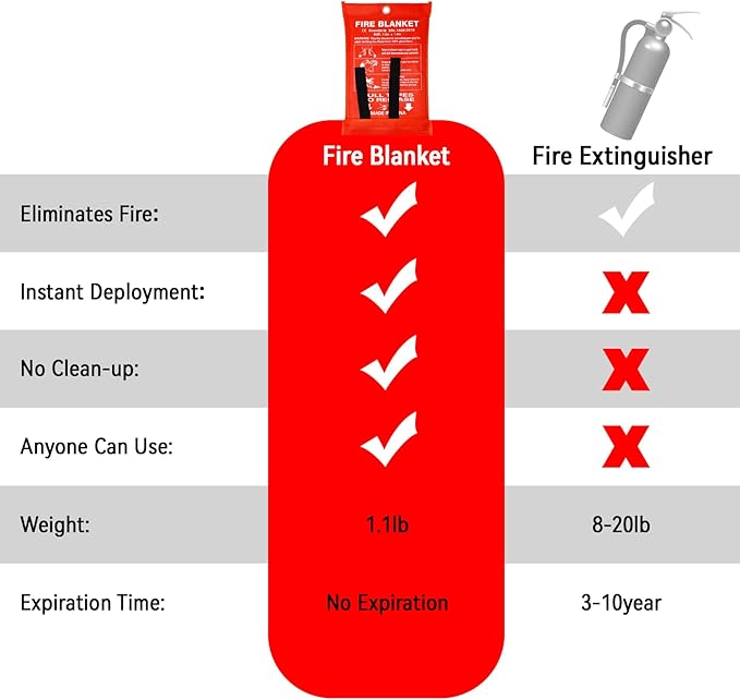 - 【Premium Products】: Emergency fire blanket for home and kitchen, made of 100% flame-resistant fiberglass fabric, compliant with the latest EN-1869:2019 standards, it can shielding oxygen away from burning embers, promptly and efficiently extinguishing the fire, capable of isolating temperatures up to 1076°F (580℃)