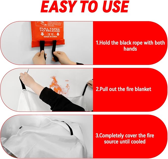 - 【Ideal Rescue】: In emergencies, swiftly pull down the black fabric strip, unfold the fire survival blanket, cover the fire, wait for a while, and retrieve the fire safety blanket after the temperature has cooled. Quickly and easily extinguish small fires, ensuring you and your family are not frightened