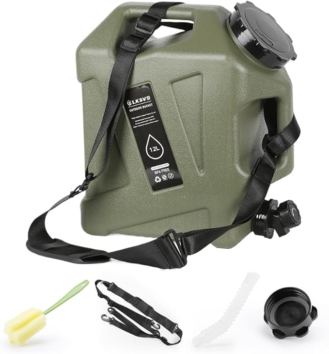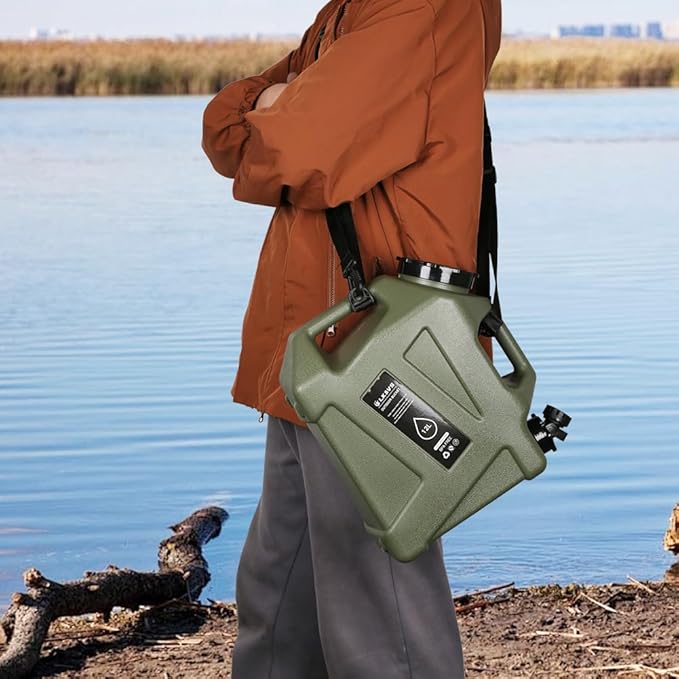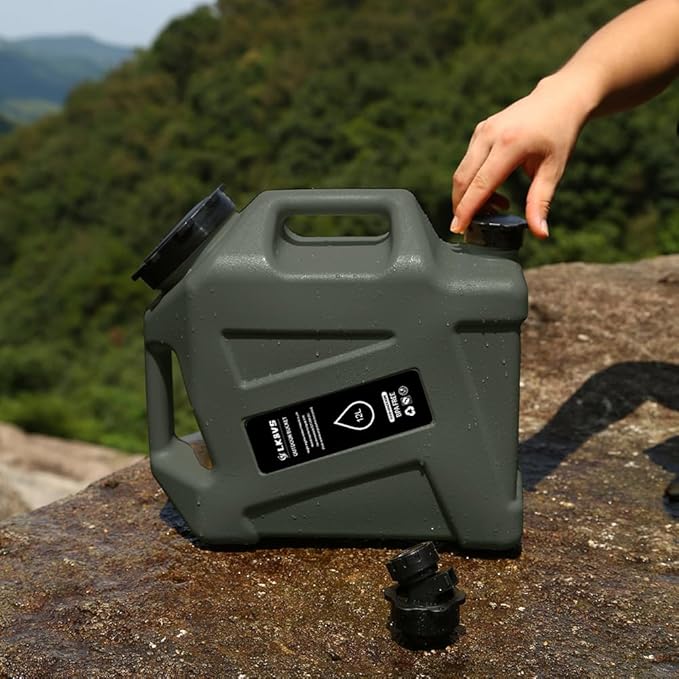 - 【Outdoor and Emergency Use】- This Camping Water Container is equipped with 2 carrying handle and a strap, very convenient to carry. It is cool looking and perfect for outdoor activities such as camping, picnics and hiking, and can also be used for home and emergency preparedness.