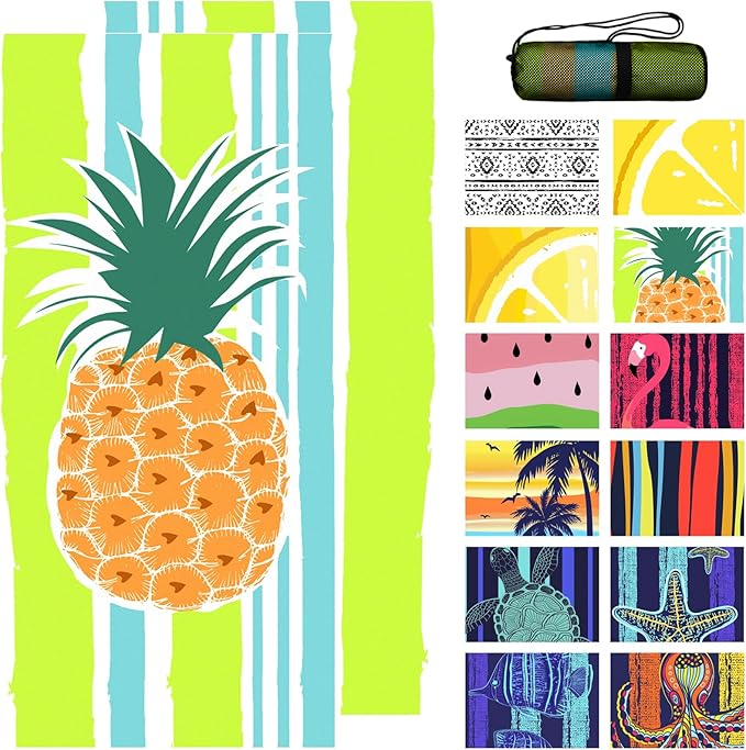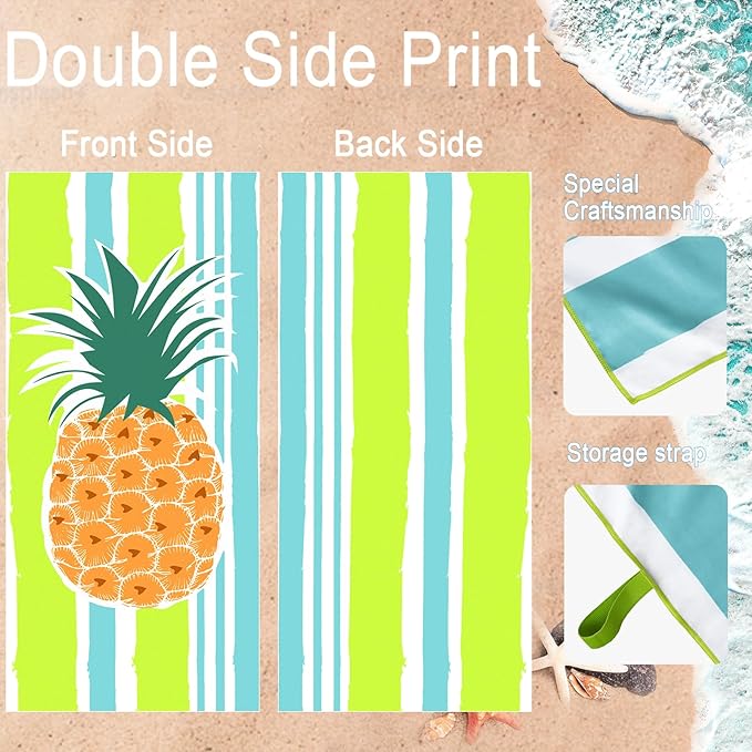 - UNIQUE DESIGN - Cute yellow and green background with pineapple pattern on the front and yellow and green stripes on the back. Our beach towel pattern is original, it's absolutely unique. This printed towel is professionally fading tested, safe, soft and skin-friendly.