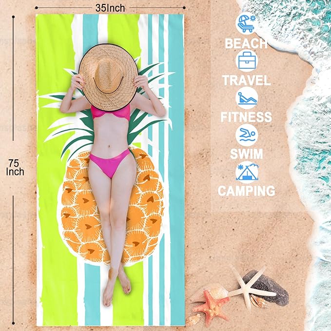 Bnuitland Pineapple Pattern Beach Towel (35X75 inches), Oversized Quick Drying Absorbent Sand Free, Cute Towels for Travel Swimming Pool Picnic, 88% Polyester and 12% Polyamide,Yellow