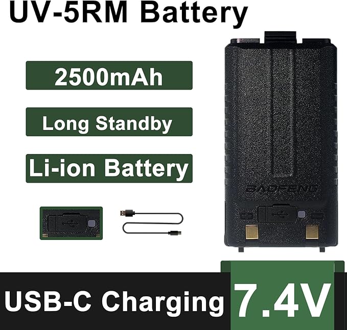 BAOFENG 2 Pack UV-5RM Battery 2500mAh Enlarge Capacity for UV-5RH Two Way Radio USB-C Charging 7.4V BL-5RH Li-ion Battery Replacement GM-5RH Walkie Talkie Accessories