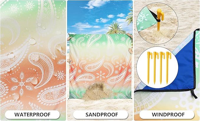 - 🌴【Beautiful Outdoor Beach Blanket】This large beach picnic mat is stylish and suitable for many outdoor places, such as the beach, park, patio, and lawn. and Besides, it can be used as a waterproof picnic blanket, for fishing, hiking, camping, and other activities. Due to its multi-functional characteristics, it is a perfect gift for family and friends.