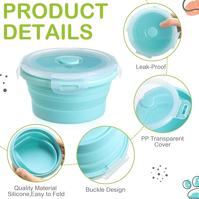 - Quality Silicone Material: crafted from quality silicone, these silicone collapsible bowl with lids are both safe and durable; It can be applied to hold milk powder, cereal, dry fruits, snacks, cookies, sweets, breakfast items, fruits, vegetables etc.; They are easy to clean, dishwasher safe, and promote healthy use; Suitable for office, camping, road trips and more