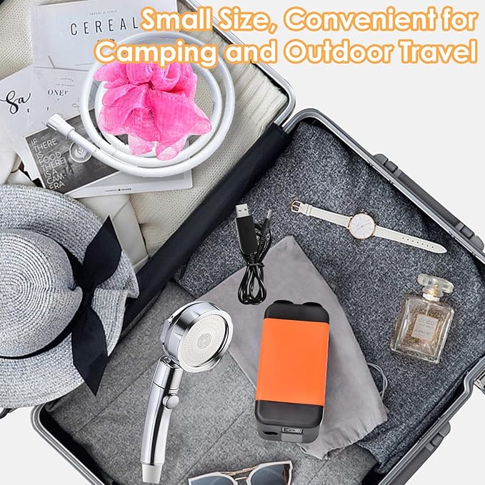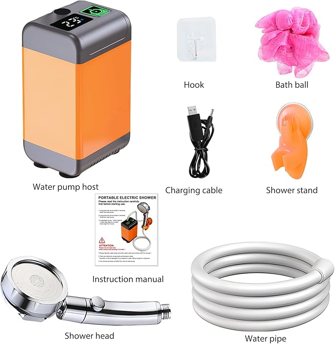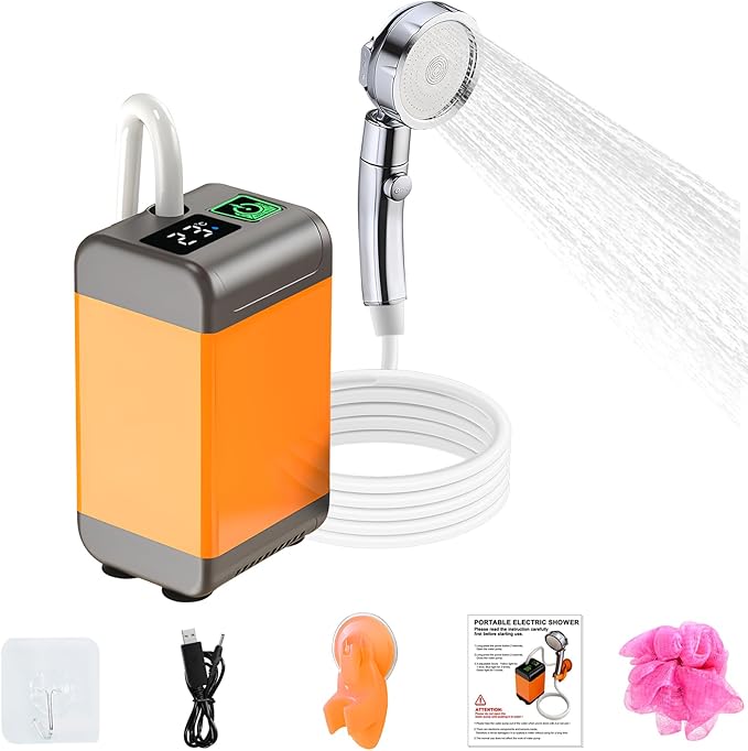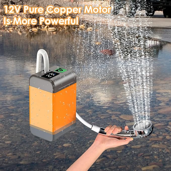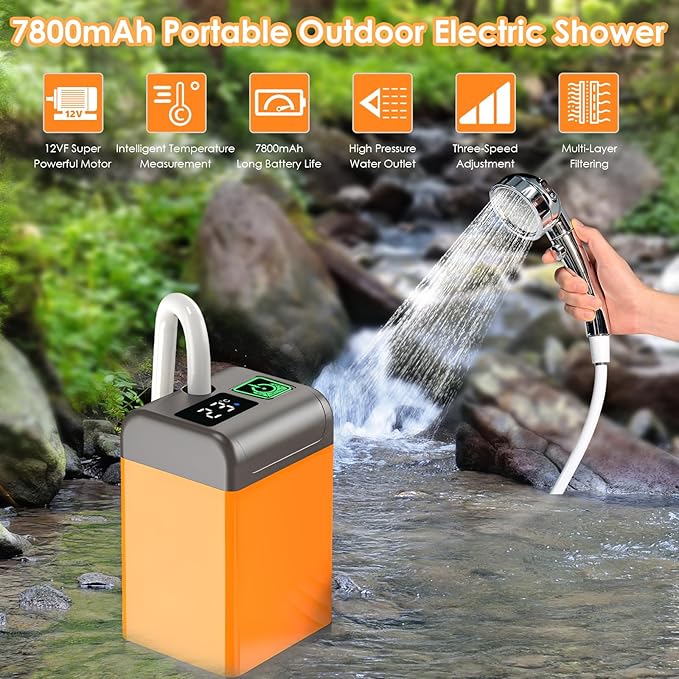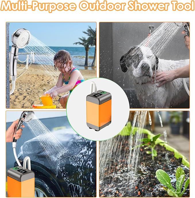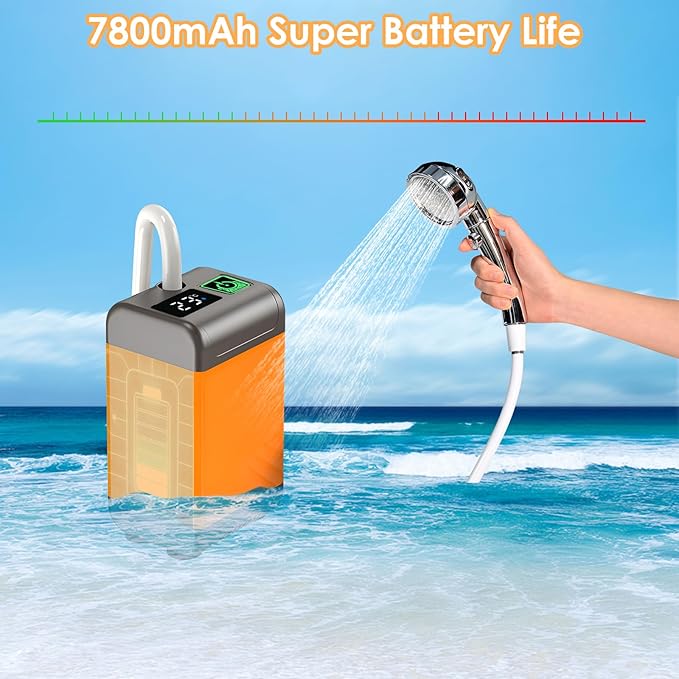 - 【7800mAh Longer Battery Life】This portable outdoor shower is equipped with a larger capacity battery, with a battery life of up to 180 minutes, and can be used for 8-10 showers. Suitable for outdoor use, such as camping, mountain climbing, car washing, bathing pets, etc.