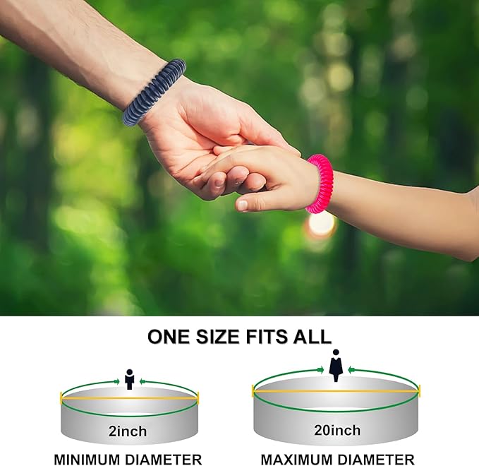 - One Size Fits All: This mosquito repellent band is fully stretchy and easily fits for your family both kids and adults, adjustable to all size and comfortable to wear on your wrist or ankle. It is portable fashionable, you can simply hang bracelet on just about anywhere such as backpacks, strollers and lot more.