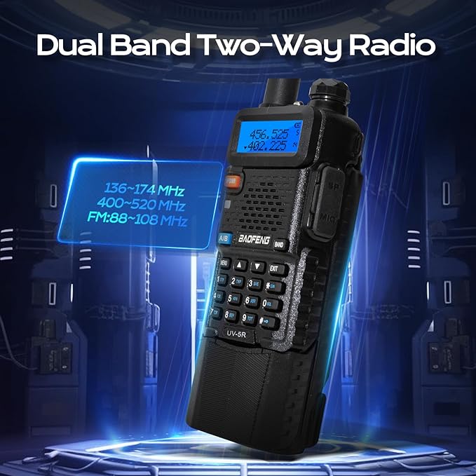 - Multifunctional BAOFENG UV5R Radio: FCC ID: 2AJGM-UV5R. Handheld ham radio provides 128 channels, 50 CTCSS, and 104 CDCSS options while supporting high/medium/low gear switching, dual display, dual standby, and dual frequency bands—VHF:136-174MHz(Rx/Tx) and UHF:400-520MHz(Rx/Tx). In addition, the UV-5R dual band walkie-talkie also has several useful features, including a three-color backlight selection, LED flashlight, automatic keypad lock, VOX, emergency alarm, and squelch function.