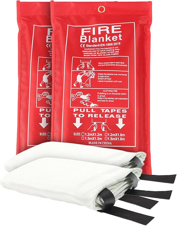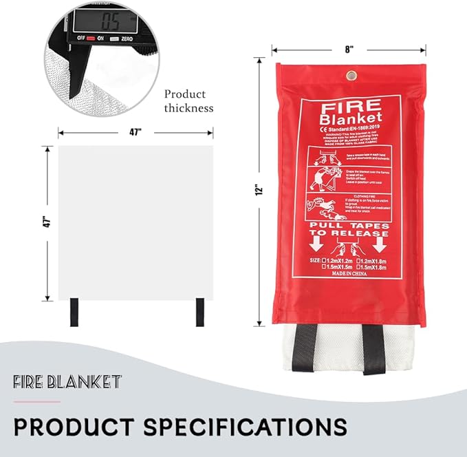 - 2-PACK 47" x 47" Home fire blanket: Fire Retardant blankets and resistant to high temperatures.The fire blankets can be folded for easy storage and hung anywhere you need it. Also can be use as emergency survival blanket or fireproof blanket for kitchen, living room, camping, car, office, welding.