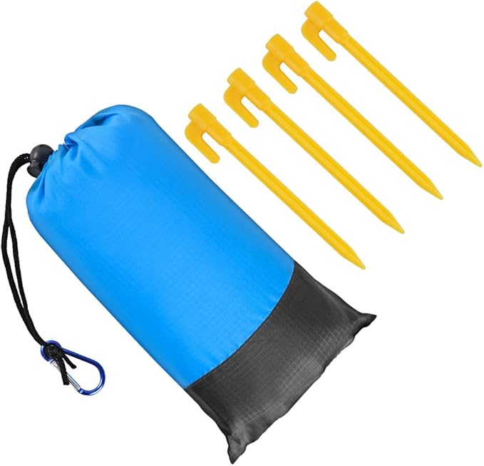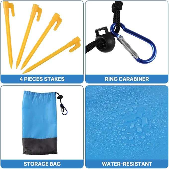 - Package includes: Beach mat x 1; Carabiner x 1; Carrying bag x 1; ABS Anchors Stakes x 4.