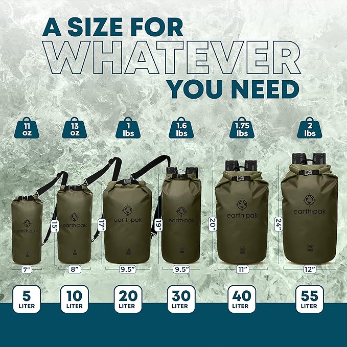 - RELIABLE PROTECTION: We believe our earth pak dry bags are the best out there--bar none. These dry bags are meant to last for years and provide waterproof protection for even the most rugged users.