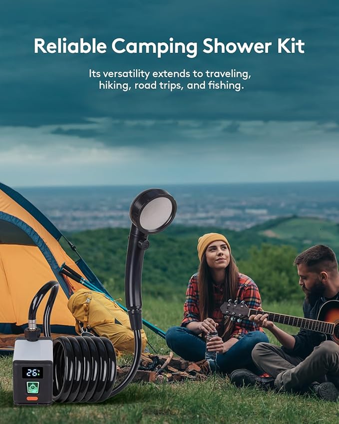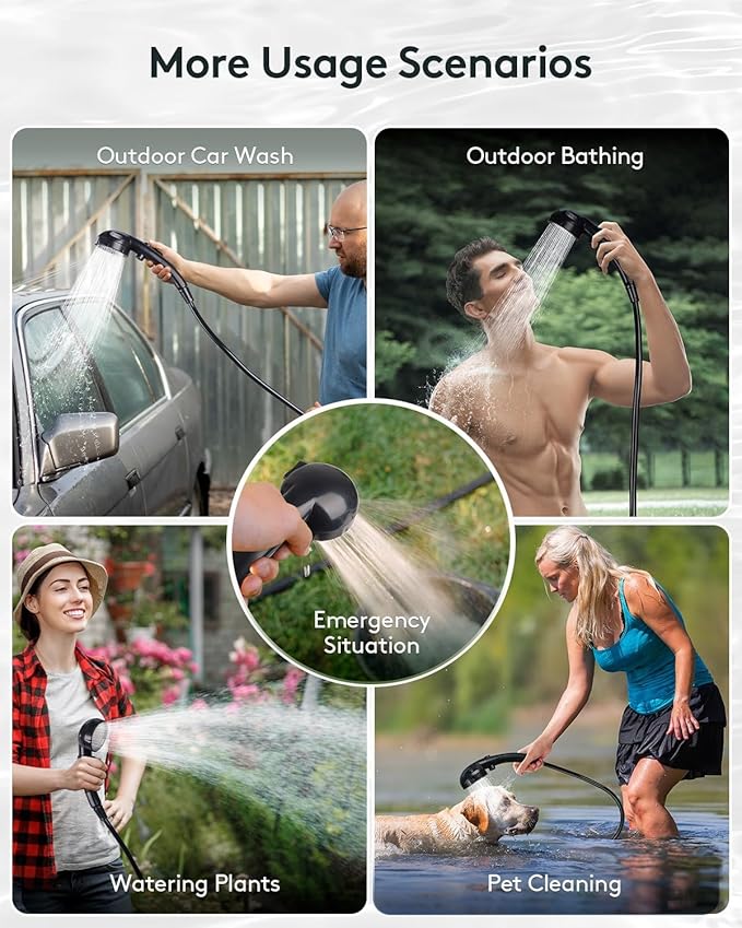 - MULTI-FUNCTIONAL APPLICATION: This compact shower pump with 6000mAh battery is ideal for outdoor activities such as camping, car washing, pet cleaning and more. Its versatility extends to traveling, hiking, road trips and fishing, ensuring reliable performance wherever you go.