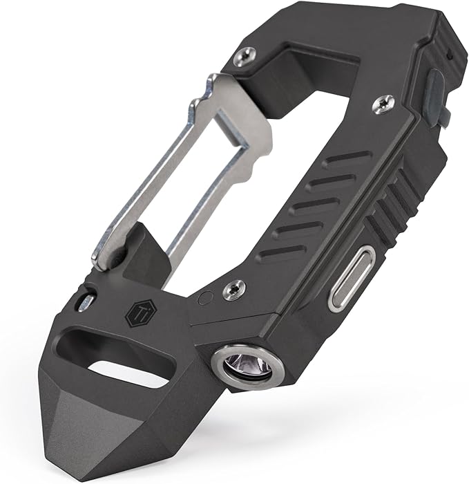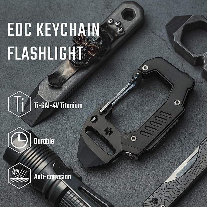 KeyUnity KF02 Titanium Multitool Carabiner Clip, 7 in 1 Multifunctional Keychain Flashlight for Camping, Hiking & Outdoor Activities