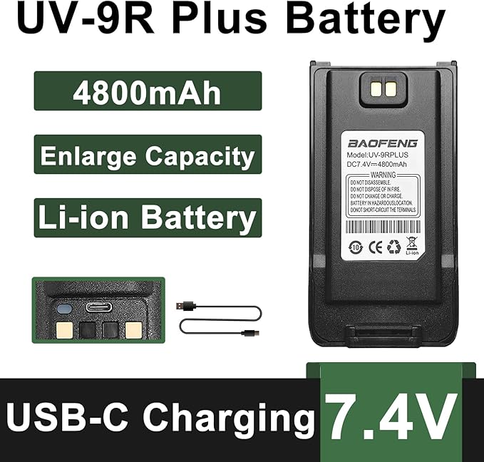 BAOFENG 3 Packs UV-9R Plus Battery USB-C Charger Enlarge 4800mAh Capacity Thicken BL-9 Li-ion Battery for T57 Accessories UV-9R Plus MK1 Portable Radio Battery for Adult