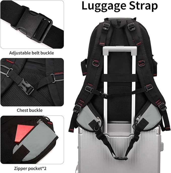 - Functionality and safety: The luggage belt allows the backpack to be installed or slide through the luggage for easy carrying. There is a hidden anti-theft pocket on the back to protect your valuables from thieves. Suitable for international air travel and one-day travel as a travel gift.