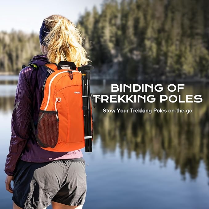 15L Highly Water-resistant Hiking Daypack, Small Backpack Travel Outdoor, Lightweight Day Pack with Tool Loops(Orange)