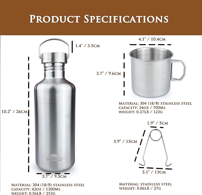 - Premium Materials: Crafted from 18/8 stainless steel, ensuring food-grade safety and health. Its durable and robust features guarantee an extended lifespan, providing reliable support for your outdoor adventures