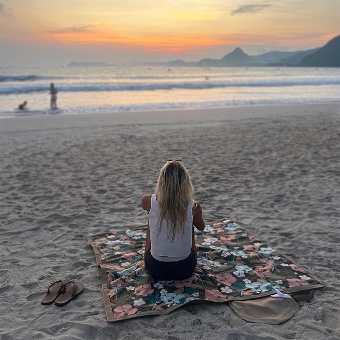 Little Unicorn Outdoor Family Picnic & Beach Blanket, Water-Resistant, Compact Fold, XL Size, 5 x 10 feet, (Hibiscus)