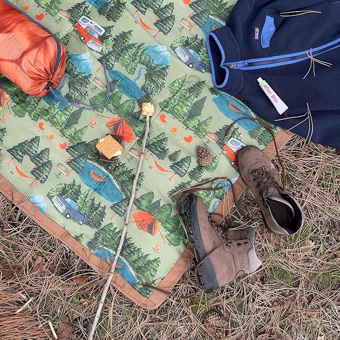 Little Unicorn Outdoor Family Picnic & Beach Blanket, Water-Resistant, Compact Fold, Large Size, 5 x 7 feet, (Camp)
