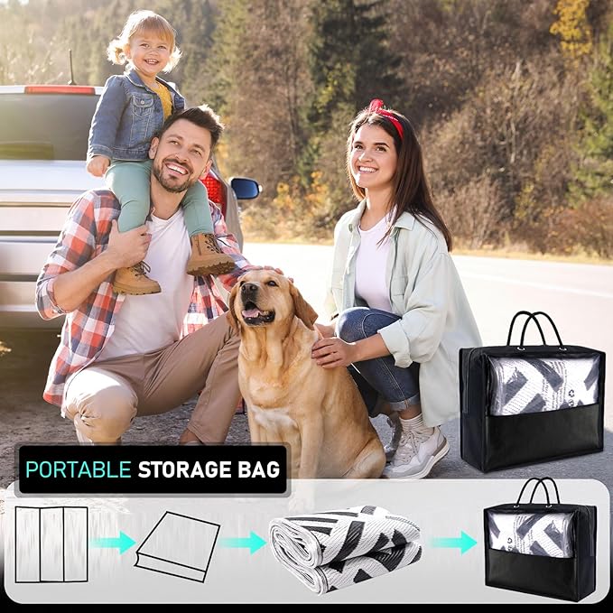 - Use It Anywhere: With the carrying bag, this camping rug is easy to transport and store, so you can take it with you on picnics, beach, and RV trips to enjoy a relaxing time outdoors. You can also use the outdoor carpet for RV travel, picnic, beaches, house deck and pool deck. Modern, versatile and sleek geometric design offers color and personality to your indoor outdoor space. LED strip lights illuminate dankness.