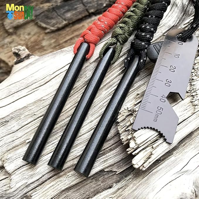 - 🔥The main functional part is the magnesium rod, which is composed of 6 metals with magnesium as the main component, and our unique formula ensures that it has the right hardness, which makes it easier to generate metal chips and thus generate enough sparks.