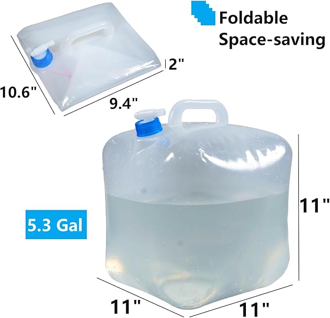 - 【Emergency Preparedness】: The large 5.3 gallon capacity can meet the water needs of a small family (less than 4 people) for a day, and is a must-have survival tool for emergencies or natural disasters such as hurricanes, tornadoes, earthquakes, fires, floods, blizzards, and more.
