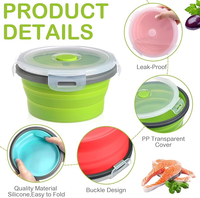 - Quality Silicone Material: crafted from quality silicone, these silicone collapsible bowls with lids are both safe and sturdy; It can be applied to hold cereal, dry fruits, snacks, cookies, breakfast items, fruits, vegetables and more, foldable fork is made of stainless steel material, it will not bring bad taste and smell to food, which is good for health, they are easy to clean, dishwasher safe, and promote healthy use