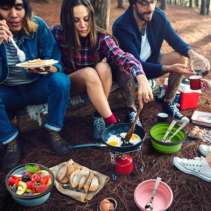 - Leakproof Cover: our camping bowl with a leakproof cover, fits comfortably and reduces the possibility of spillage; By keeping the bowl clean, no dust and no dirt, it avoids food from spoiling, the lid and silicone base is cut resistant and functions as a cutting board, whether you are camping, having a picnic outdoors or working at work, you can carry foldable tableware with you