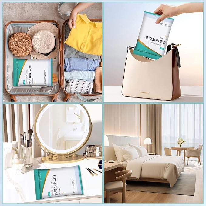 - 【 Convenient to carry 】: Each set of disposable compressed towel sets is individually packaged, lightweight, compact and portable. The vacuum size is 19x24cm/7.5x9.5inch, which you can carry with you in handbags, backpacks, suitcases, etc., without taking up space. The combination of towels and bath towels meets your daily usage needs