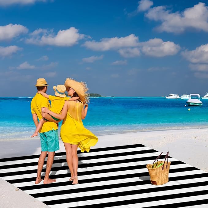 - Outdoor Versatility: Beyond the beach, these versatile outdoor blankets are perfect for travel, picnics, camping, and hiking. With eyecatching black & white stripe design, you can quick spot these blankets, with a choice of modern minimalist style.