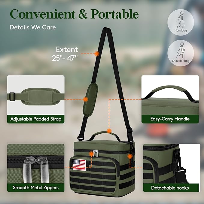 - Convenient & Portable: Equipped with a 47"(120cm) adjustable, detachable shoulder strap and reinforced grab handle for comfortable carrying. Available in multiple colors, it's the perfect gift for dads, husbands, and boyfriends for work, beach, fishing, camping, hiking, or any other outdoor activity.