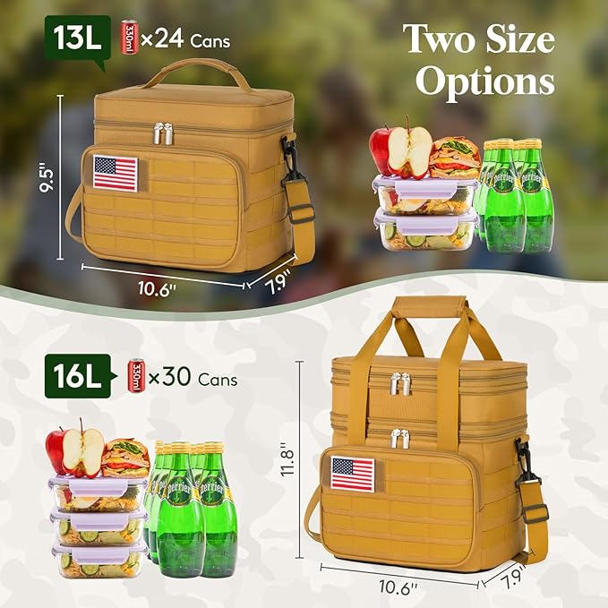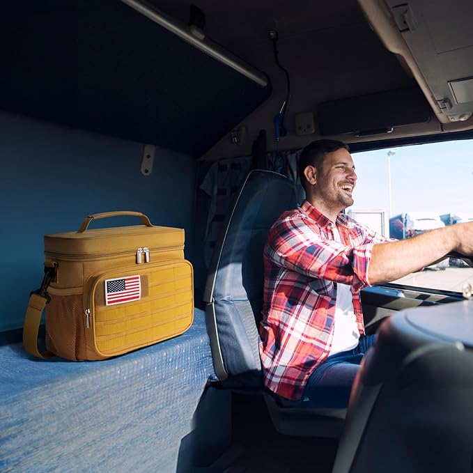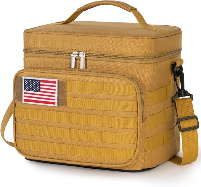 - Tactical Style: Our lunch box for men is perfect for outdoor enthusiasts and military fans. With a classic military-style design featuring MOLLE webbing for extra attachments. The front pocket’s hook and loop strip for displaying national flags or military patches shows your unique style and personality.