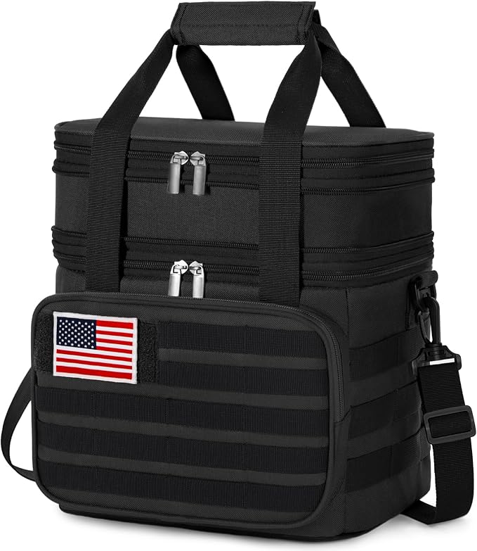Lifewit Double Deck Tactical Lunch Box for Men, Expandable Leakproof Insulated Large Lunch Cooler with MOLLE Webbing and Shoulder Straps, Heavy Duty Lunch Bag for Men Work Camping Picnic, 16L Black