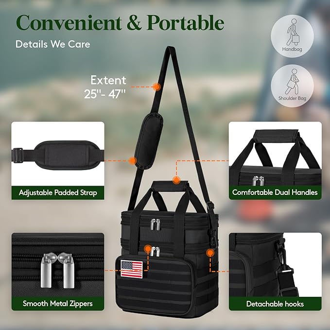 - Convenient & Portable: Equipped with a 47"(120cm) adjustable, detachable shoulder strap and reinforced dual handles for comfortable carrying. Available in multiple colors, it's the perfect gift for dads, husbands, and boyfriends for work, beach, fishing, camping, hiking, or any other outdoor activity.