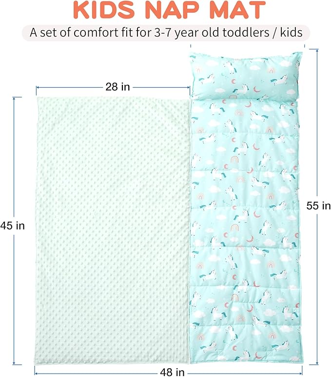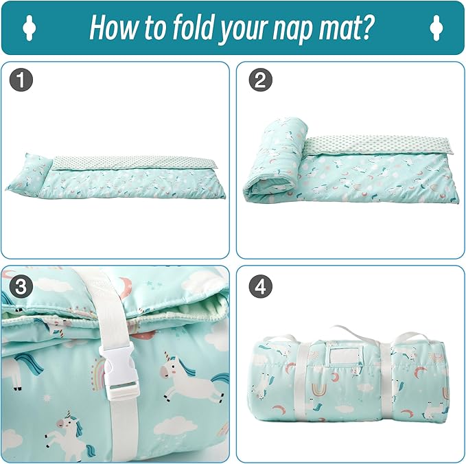 - PERFECT GIFT SET: With a roll-type and foldable storage design, this toddler nap mat with pillow becomes an essential companion for daycare, kindergarten and preschool. This nap mat is also suitable for family outings, camping trips, picnics, and more, ensuring convenience and style wherever the adventure takes them.
