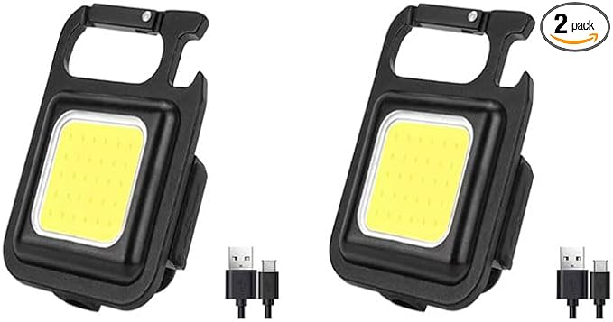 2Pack Keychain Work Light - Compact, Rechargeable, Ultra-Bright, with Carabiner, Magnetic, Adjustable Stand, Tripod - Perfect for Outdoor, Work, Emergency Use (2) pcs