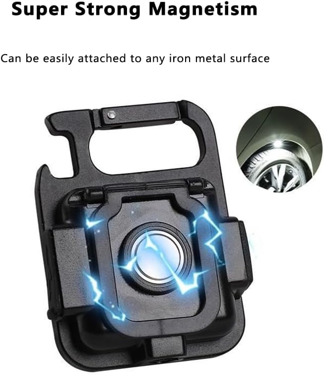 4Pack Keychain Work Light - Compact, Rechargeable, Ultra-Bright, with Carabiner, Magnetic, Adjustable Stand, Tripod - Perfect for Outdoor, Work, Emergency Use (4) pcs