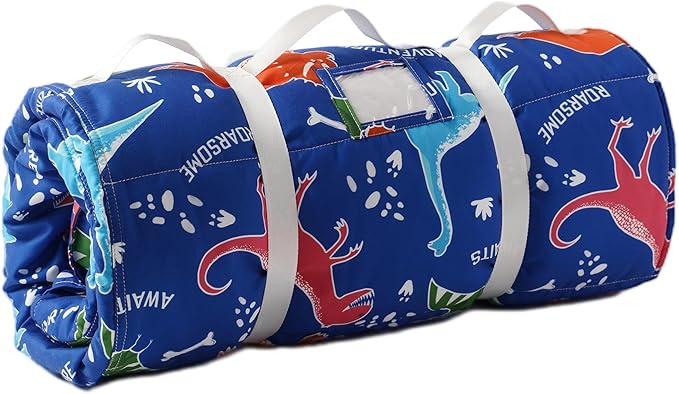 - CONVENIENT FEATURES: Designed to roll-up, velcro close, name card pocket and carry away with a handle, this nap blanket with pillow is easy to carry to daycare, school, on playdates, or on trips. Our padded nap mat is a toddler and baby essential.