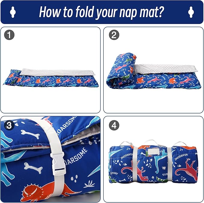 - PERFECT GIFT SET: With a roll-type and foldable storage design, this toddler nap mat with pillow becomes an essential companion for daycare, kindergarten and preschool. This nap mat is also suitable for family outings, camping trips, picnics, and more, ensuring convenience and style wherever the adventure takes them.