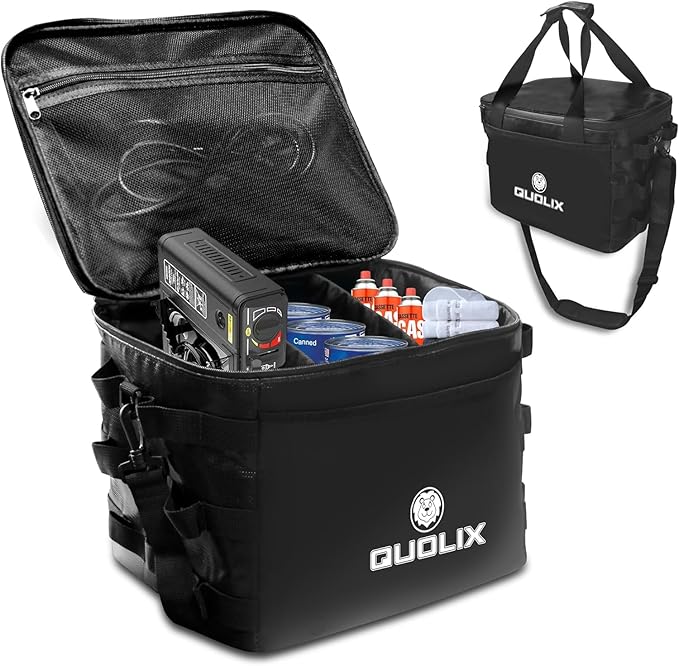 - Extra large interior space: QUOLIX carrying case, designed for outdoor enthusiasts. Equipped with a removable split layer in the middle to protect your equipment from scratches. Extra large capacity (11X13.7X9.8 inch) outdoor bag, compatible with Jackery Explorer 160/240/300/500 and GasOne portable butane gas stove. Before ordering, please check if it is the size you need.