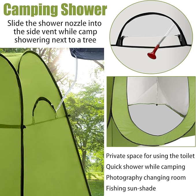 - MULTI-USE - INSTANT PRIVACY PROTECTION: This Shower Tent not only provides you with a private space for using the toilet and enjoying a quick shower while camping outdoors, but also can be used as a photography changing room, fishing sun-shade, greenhouse and more. Our Ultra-lightweight Large Pop Up Privacy Tent comes with a folding portable toilet, which is made of premium material that can hold up to 300 pounds and is convenient for carry and transportation.