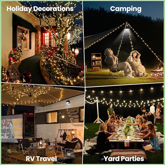 - Application Scenario: This portable stowable string light are widely used in tents, RVs, camping, patio, Christmas tree decorations, which always bring out a romantic and cozy atmosphere. This camping fairy lights can be rolled up is an indispensable glamping accessories for vacation camping.If you encounter any problems during the shopping process, we will help you solve them within 24 hours.