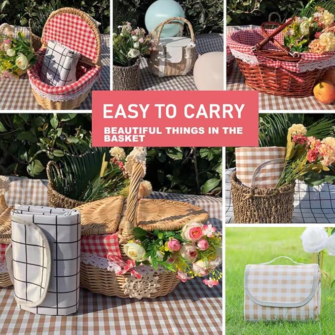 - EXTRA LARGE OUTDOOR BLANKET: Attractive Design For Photos - Cute gingham blanket with white and tan checkers looks great in photos, on grass or sand. Waterproof picnic blanket is a good choice for your daily life.