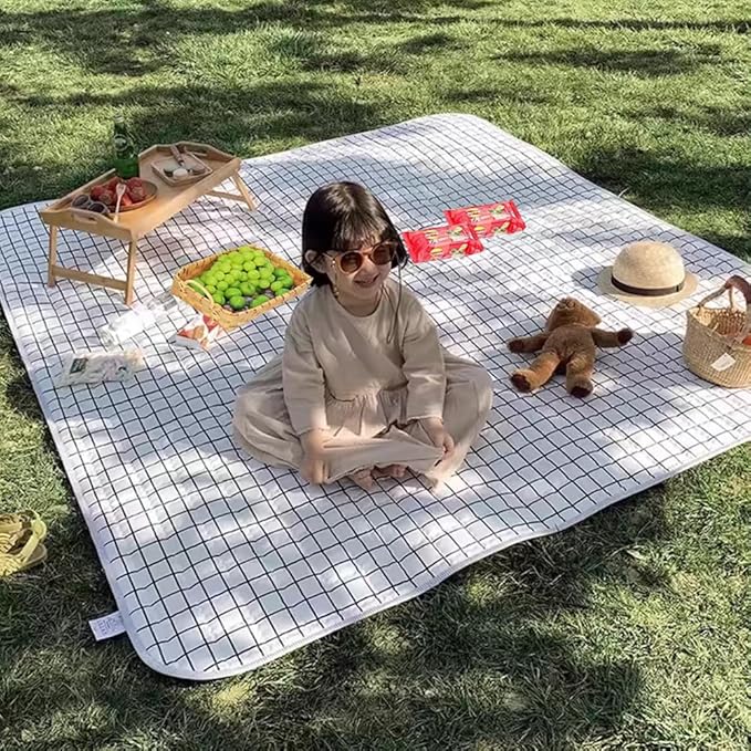 - EXTRA LARGE OUTDOOR BLANKET: Attractive Design For Photos - Cute gingham blanket with white and tan checkers looks great in photos, on grass or sand. Waterproof picnic blanket is a good choice for your daily life.
