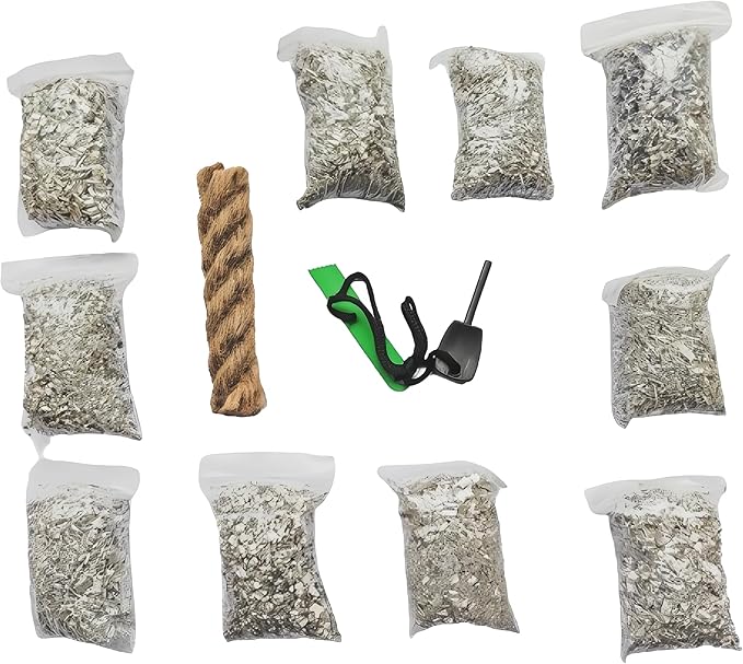 egreen Emergency Fire Starter Magnesium 10 Bags Ferro Rod Striker Weatherproof Matches Jute Rope for Camping Hiking Bushcrat Ourdoor Survival