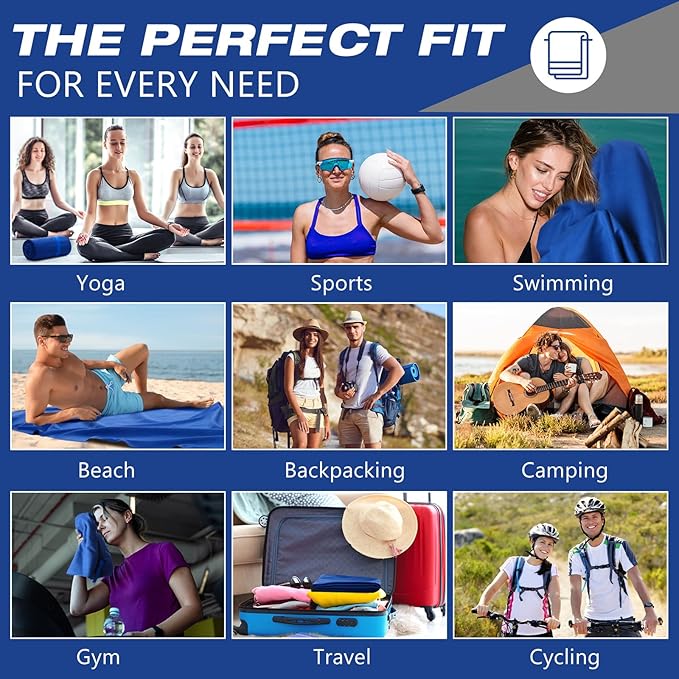 - Multipurpose: microfiber towel set available in 3 colors; The size is about 60 x 30 inches, allows you to use them as a swim towel for drying off, a gym towel for working out, or a small beach towel for vacation to keep you dry and clean during your workout; Suitable for outdoor, swimming, camping, gym, yoga, hiking, backpacking and working out