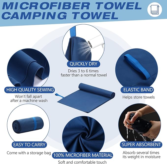 - Lightweight and Easy to Carry: each compact travel towel set comes with a breathable carrying bag and elastic band, practical and easy to hang anywhere and dry; Although the camping towel made of microfiber cloth is large in size, it is thin and compact and can be rolled up and stored when not in use, making it easy to store and carry