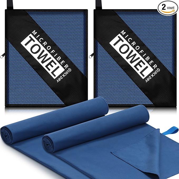2 Pack Microfiber Beach Towel Large Travel Towel 60 x 30 Inch Quick Dry Swimming Towel Absorbent Ultra Compact Lightweight Camping Towel for Gym, Hiking, Pool, Yoga